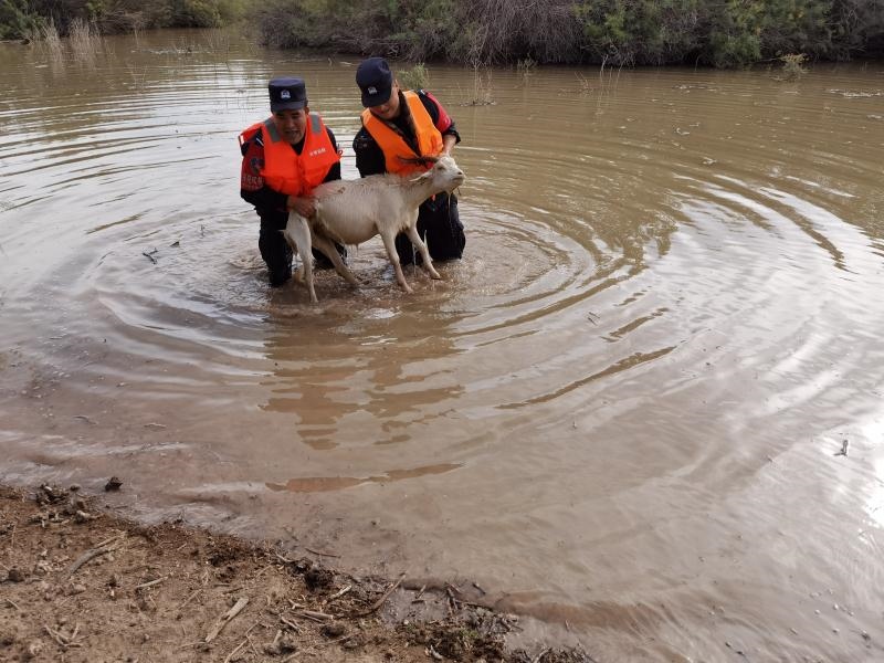 “請(qǐng)民警同志幫幫忙,我的羊群被困在河里了,這可是我的命根子啊!”2020年9月8日8時(shí)許,蘇泊淖爾邊境派出所一個(gè)報(bào)警電話打破了清晨的寧?kù)o,來(lái)電的是內(nèi)蒙古額濟(jì)納旗蘇泊淖爾蘇木牧民布某。原來(lái),夜里黑河漲水,他家的幾十只羊被困,望著身陷險(xiǎn)境的羊群,焦急的布某打通了派出所的報(bào)警電話。