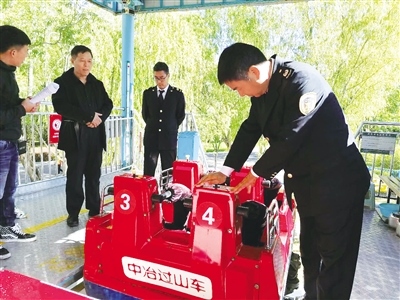 執(zhí)法人員對過山車進(jìn)行檢查