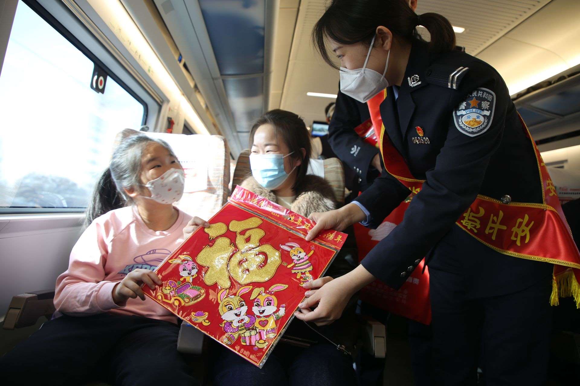 同時,呼和浩特鐵路警方組織管內(nèi)各所隊、文藝小分隊進(jìn)村入戶、登乘列車,集中開展形式多樣、內(nèi)容豐富的主題宣傳活動,通過懸掛橫幅、擺放展板、現(xiàn)場答疑、發(fā)放宣傳手冊、贈送“福”字等方式,向過往旅客講解出行安全常識,提升旅客群眾的安全意識。