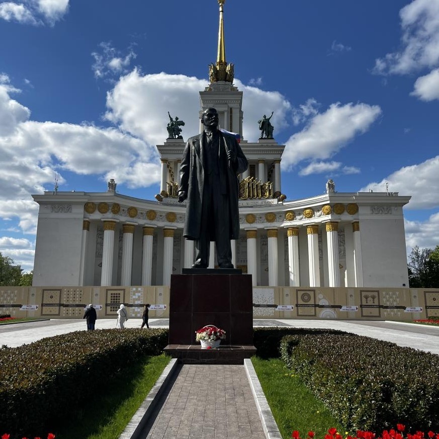 當(dāng)?shù)貢r(shí)間5月6日,位于俄羅斯首都莫斯科全俄展覽中心前的列寧雕像。姜忠奇 攝