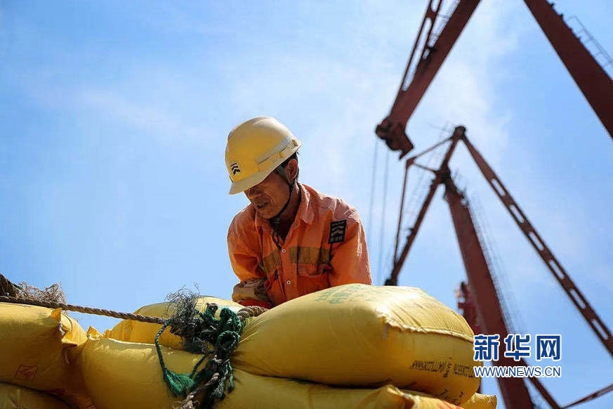 一線安監(jiān)員冒著酷暑在碼頭現(xiàn)場(chǎng)指揮裝卸工人安全吊裝作業(yè)。新華網(wǎng)發(fā)