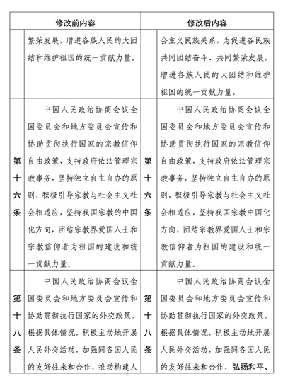 中國(guó)人民政治協(xié)商會(huì)議章程修改前后內(nèi)容對(duì)照表