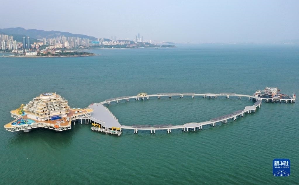 當(dāng)日,位于山東省煙臺(tái)市萊山區(qū)的“耕海1號(hào)”海洋牧場綜合體二期項(xiàng)目投入運(yùn)營?!案?號(hào)”集漁業(yè)養(yǎng)殖、海上觀光、休閑垂釣、餐飲住宿、科研科普等于一體,創(chuàng)新性實(shí)現(xiàn)現(xiàn)代海洋漁業(yè)、海洋工程技術(shù)和海洋文化旅游產(chǎn)業(yè)深度有機(jī)融合。新華社發(fā)(唐克攝)