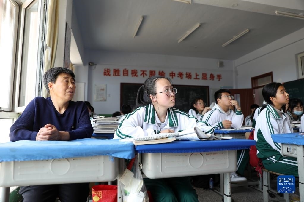 張連琴(左)和女兒李昕偉在教室內(nèi)聽課(5月8日攝)。