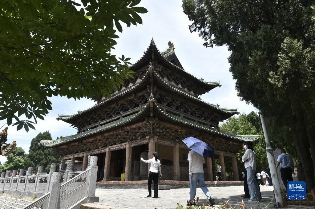 6月15日,游人在王屋山腳下的愚公村村史館里參觀。