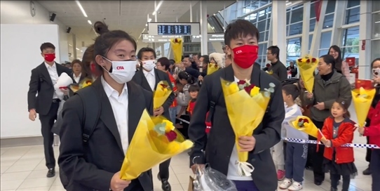 當天一早,正值冬季的阿德萊德下起了雨,增添一絲寒意。早7點左右,100多名當?shù)孛癖姷群蛟诎⒌氯R德機場內,有的手捧鮮花,有的身穿中國隊T恤,等待中國女足的到來。他們中一些人來自當?shù)厝A人社團,其中不少家長帶著小朋友一早趕來,還有的是球迷。
