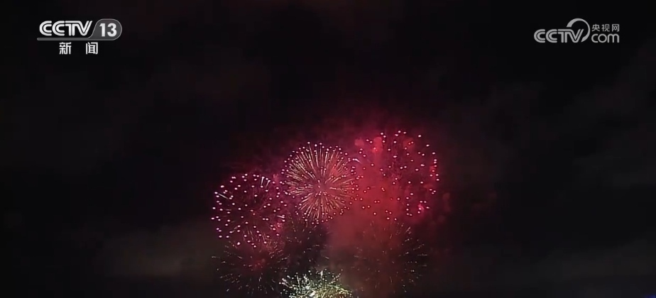 晚上9時(shí),來自中國(guó)的煙花公司呈現(xiàn)了以“焰之頌歌”為主題的煙花表演。伴隨著大氣磅礴的中國(guó)風(fēng)音樂,形式多樣的煙花在夜空中輪番綻放,引來人群的陣陣歡呼和喝彩,將澳門的國(guó)慶氛圍推向高潮。