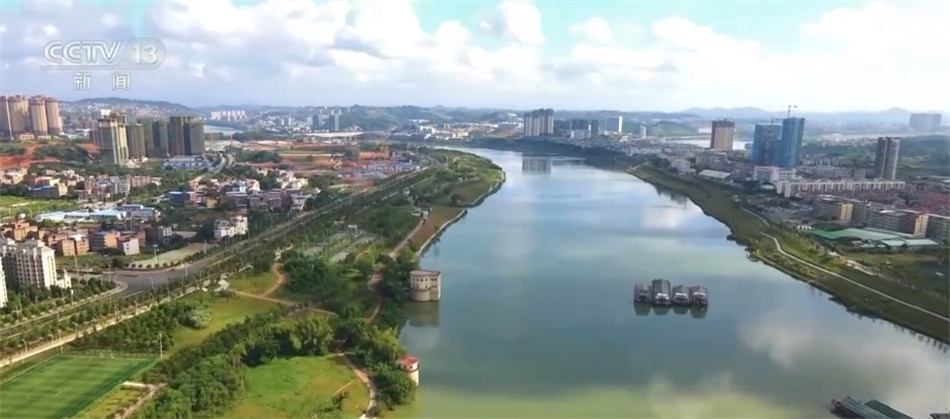 現在我們看到的是廣西南寧邕江河畔,沿岸植被郁郁蔥蔥,10多座濱水公園各具特色,200多處運動場分布其中。市民們在球場里、在步道上盡享運動健身帶來的樂趣,不僅有各種體育運動場所,還有健身器材及滑梯、秋千等兒童游樂設施。