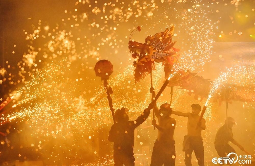 2024年2月14日,貴州省銅仁市印江土家族苗族自治縣新寨鎮(zhèn)凱望村舉行舞龍噓花賀新春活動(dòng)。鑼鼓喧天,土家族村民揮舞著4條彩色長龍?jiān)趪u花中穿梭舞動(dòng),向村民們拜年共賀新春,呈現(xiàn)出熱鬧喜慶的節(jié)日氣氛。