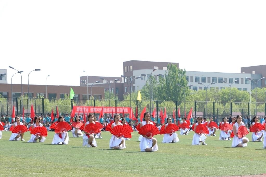 2019年4月26日,承德應(yīng)用技術(shù)職業(yè)學(xué)院學(xué)生在天津中德應(yīng)用技術(shù)大學(xué)運(yùn)動會開幕式上表演。新華社發(fā)