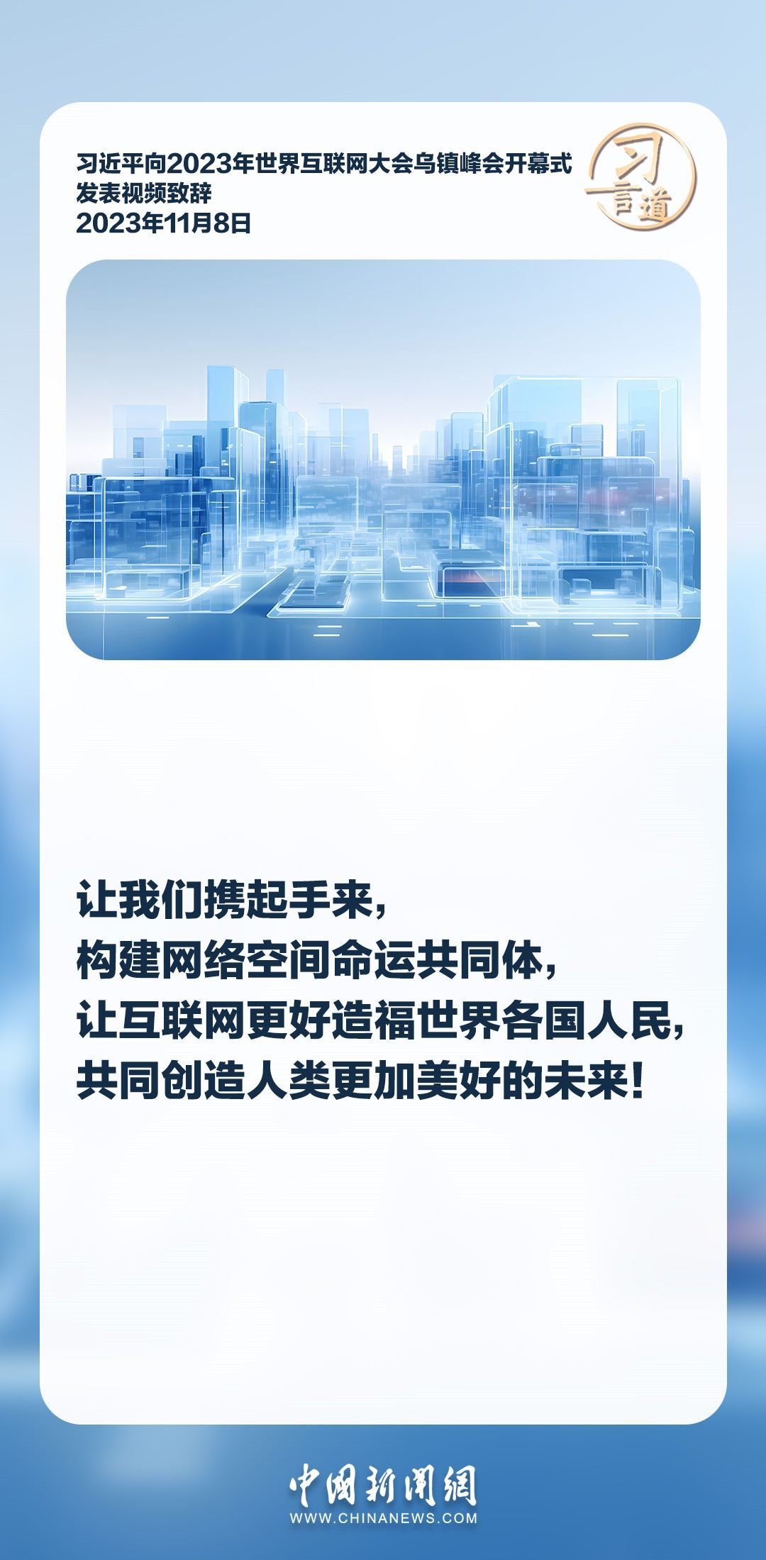 信息革命時代潮流浩蕩前行,網(wǎng)絡空間承載著人類對美好未來的無限憧憬。習近平主席多次強調各國應該共同構建網(wǎng)絡空間命運共同體,推動網(wǎng)絡空間互聯(lián)互通、共享共治,為開創(chuàng)人類發(fā)展更加美好的未來助力。