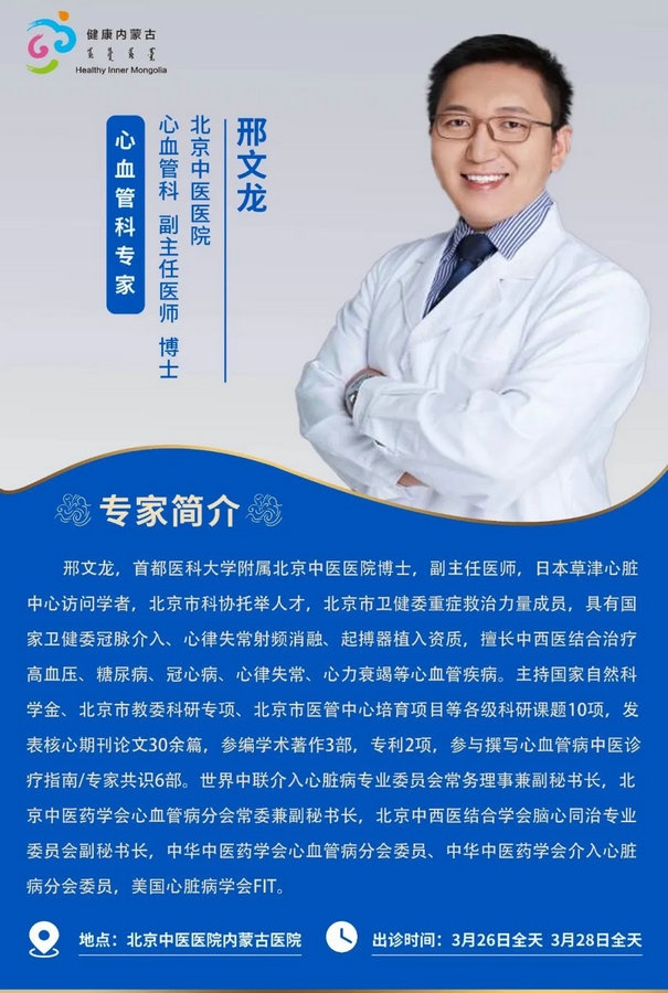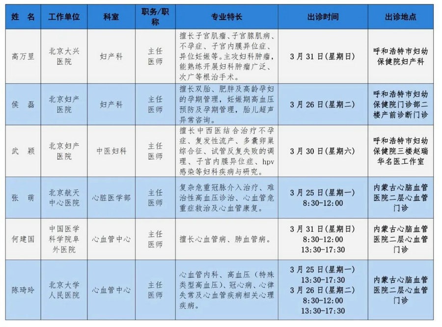 京蒙協(xié)作 政協(xié)助力。每周有北京相關(guān)協(xié)作醫(yī)院專家來(lái)呼和浩特出診,現(xiàn)將本周專家出診信息予以發(fā)布。