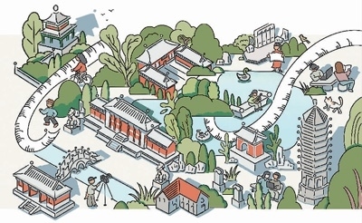 周 玨繪周玨畢業(yè)于北京大學(xué)考古文博學(xué)院,是一名職業(yè)插畫師,曾經(jīng)參加過(guò)導(dǎo)師張劍葳副教授組織的燕園文物數(shù)字化工作坊。她用畫作描述了師生參與燕南園歷史地段景觀保護(hù)與展示項(xiàng)目的情景?!把鄨@曾是我學(xué)習(xí)生活過(guò)的地方,又是值得研究與保護(hù)的文化遺產(chǎn)。燕園不僅以塔、湖聞名,還有西校門、辦公樓、紅五樓、校景亭、花神廟和燕南園。”