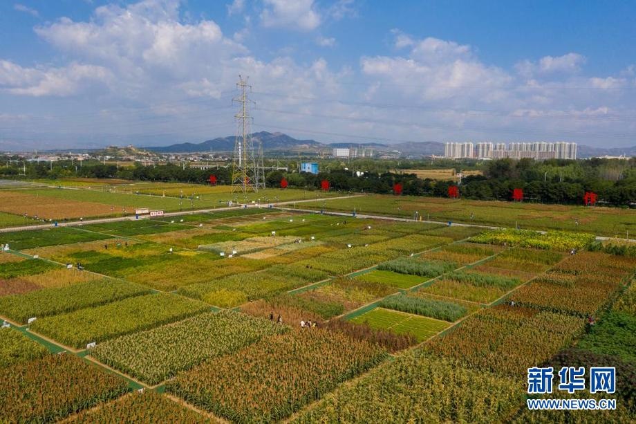 這是9月22日拍攝的位于山西省忻州市忻府區(qū)小檀村的雜糧科技展示園(無人機照片)。新華社記者 楊晨光 攝