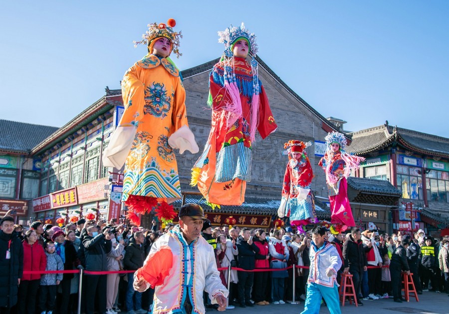 2024年2月15日,民間藝人在呼和浩特新春文化廟會(huì)現(xiàn)場(chǎng)進(jìn)行國(guó)家級(jí)非物質(zhì)文化遺產(chǎn)代表性項(xiàng)目腦閣表演。丁根厚 攝