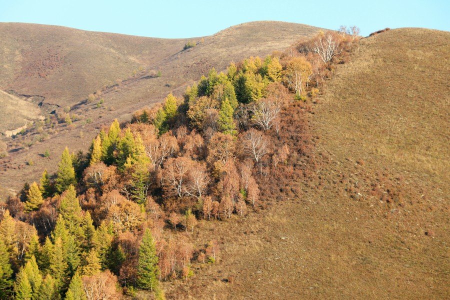10月7日,呼和浩特大青山小井溝內(nèi),秋色五彩斑斕層林盡染。 北疆新聞?dòng)浾?nbsp; 張楊攝影