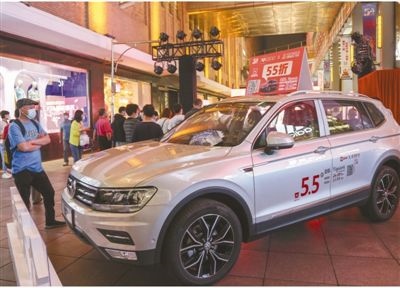 近日,上海南京路步行街上,不少商家采取“線上線下”聯(lián)動(dòng)方式推出各類(lèi)汽車(chē)促銷(xiāo)活動(dòng)。圖為促銷(xiāo)活動(dòng)現(xiàn)場(chǎng)。人民視覺(jué)