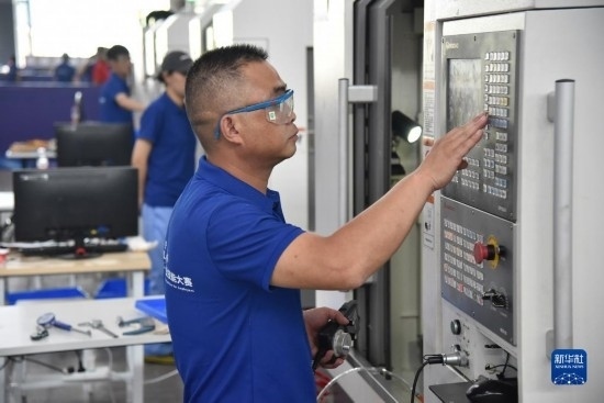 6月27日,參賽技術(shù)工人進行數(shù)控銑工技能比拼。