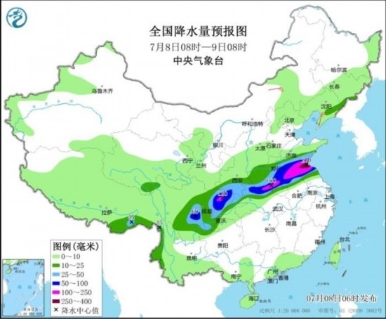 全國降水量預報圖(7月8日08時-9日08時)