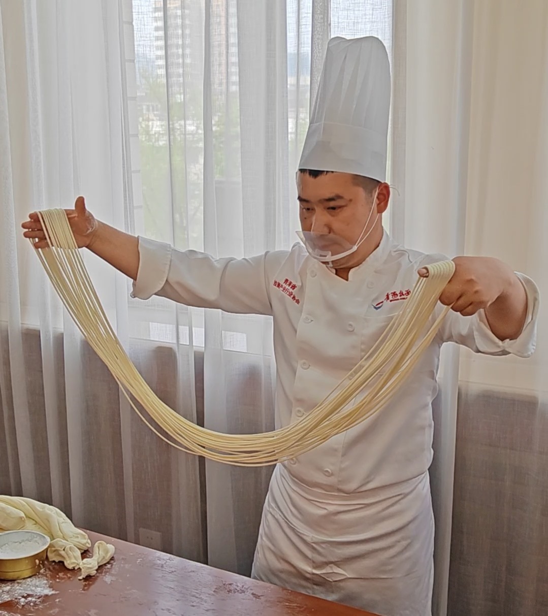 來自青海省本地的拉面師傅還在現(xiàn)場(chǎng)展示了拉面技術(shù)。據(jù)了解,拉面是4000多年來中華民族對(duì)美食的探索和傳承的結(jié)晶。2002年,在青海省海東市民和回族土族自治縣的喇家遺址中發(fā)現(xiàn)了距今4000多年前的一根面條,是迄今為止發(fā)現(xiàn)的世界上最古老的面條,被稱作“世界第一面”,也說明中國(guó)是面條的發(fā)源地。