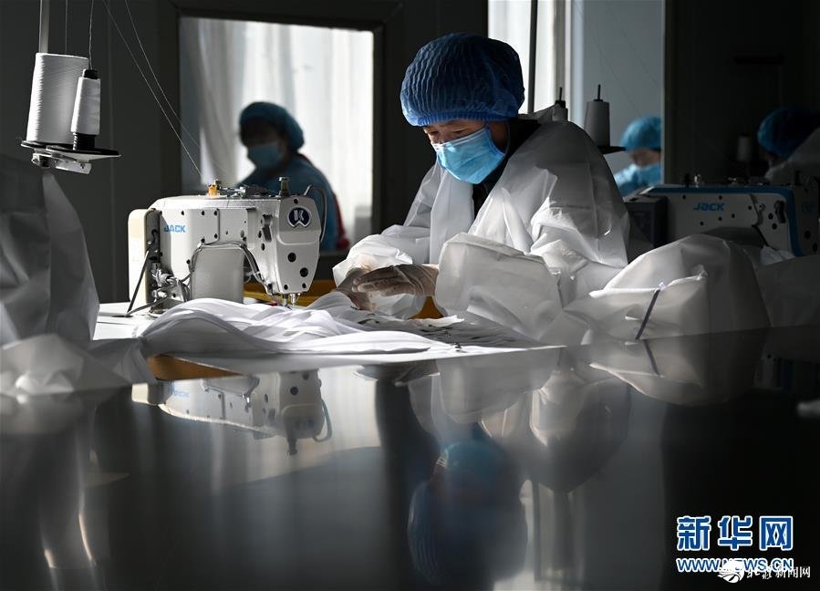 呼和浩特欣龍康醫(yī)療器械有限責(zé)任公司是一家員工不足20人的小型企業(yè),也是內(nèi)蒙古為數(shù)不多能生產(chǎn)醫(yī)用防護服的企業(yè)之一。新冠肺炎疫情發(fā)生后,公司從1月24日(除夕)就組織員工復(fù)產(chǎn),24小時連續(xù)作業(yè),生產(chǎn)無菌醫(yī)用防護服和隔離服。目前,該企業(yè)每天生產(chǎn)防護服約400套,全部用于內(nèi)蒙古防治新冠肺炎的一線醫(yī)護人員。 新華社記者 徐欽 攝