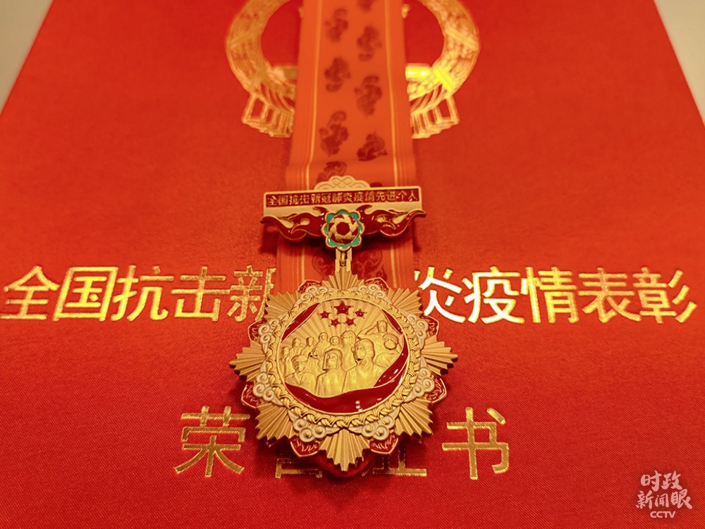 △全國(guó)抗擊新冠肺炎疫情先進(jìn)個(gè)人獎(jiǎng)?wù)潞妥C書。(總臺(tái)央視記者張淳拍攝)