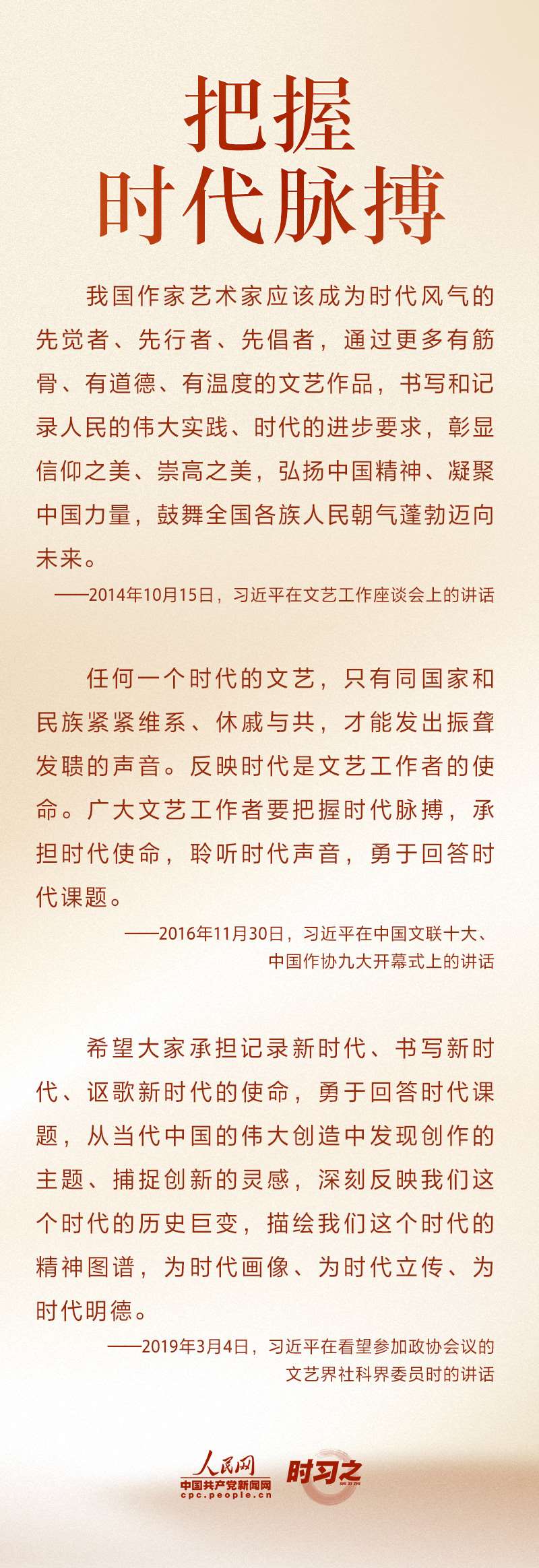 文運同國運相牽,文脈同國脈相連。新時代文藝工作者承擔(dān)著記錄新時代、書寫新時代、謳歌新時代的重大使命。“文藝是鑄造靈魂的工程,文藝工作者是靈魂的工程師?!秉h的十八大以來,習(xí)近平不斷激勵文藝工作者不辜負時代召喚、不辜負人民期待,以德服人、以文化人。