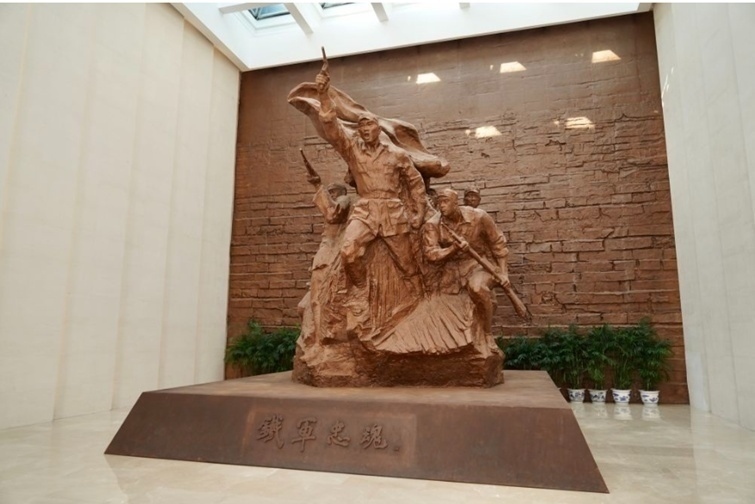 新四軍紀念館內的鐵軍忠魂雕塑。(新華社記者 李博 攝)