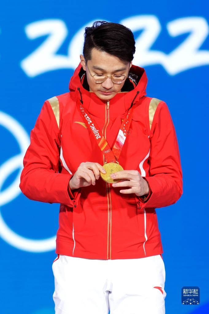 2月8日,冠軍中國隊(duì)選手任子威在獎牌頒發(fā)儀式上。
