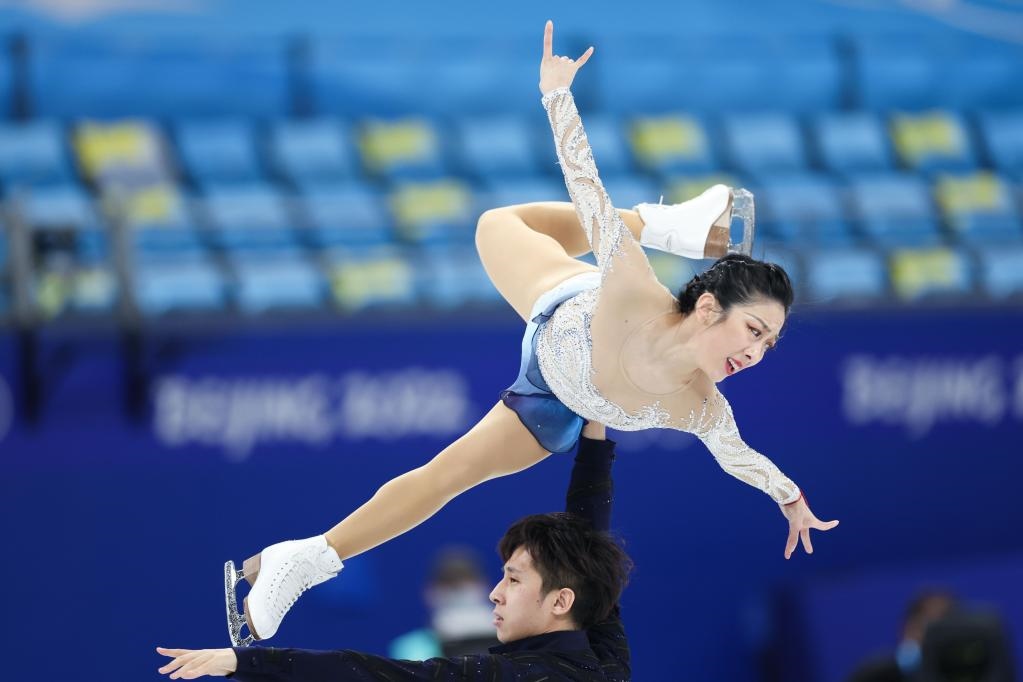 2月19日,中國選手隋文靜(上)/韓聰在比賽中。新華社記者李尕攝