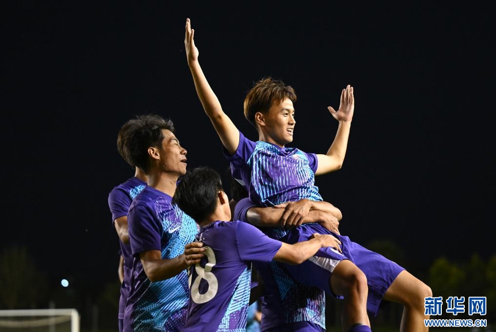 ??6月15日,浙江俱樂部U21隊球員王鈺棟(前)在比賽中慶祝進(jìn)球。