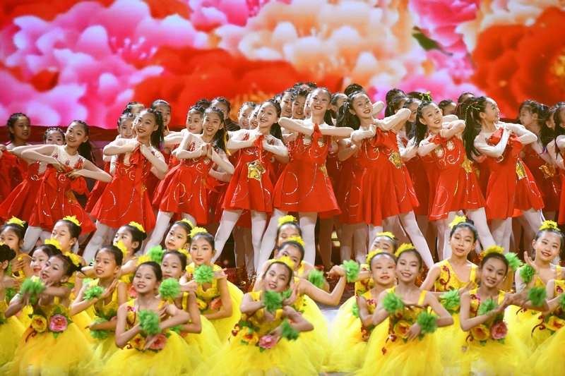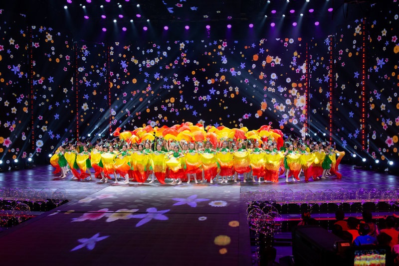 在節(jié)目的選擇和編排上,突出少年兒童的個(gè)性和特點(diǎn),大體量的群體歌舞節(jié)目貫穿整場晚會,營造出濃濃的節(jié)日氣氛。民族舞、現(xiàn)代舞、街舞、雜技同臺炫技,熱鬧熱烈。