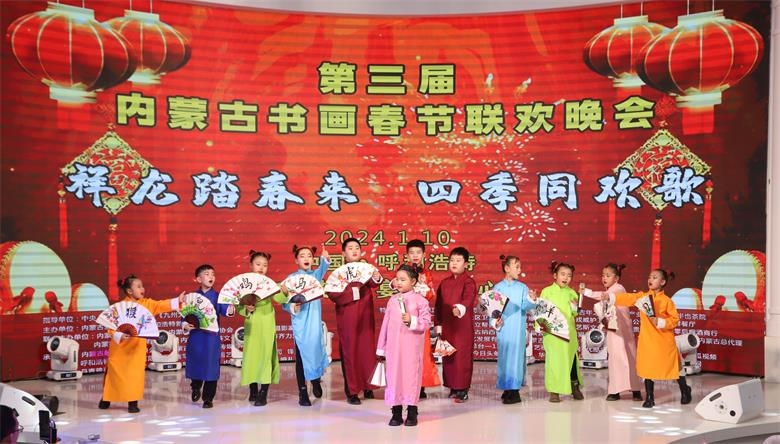 北疆新聞呼和浩特消息 1月10日,以“祥龍?zhí)ご簛?lái) 四季同歡歌”為主題的第三屆內(nèi)蒙古書(shū)畫(huà)春節(jié)聯(lián)歡晚會(huì)在呼和浩特圓滿(mǎn)舉行。本次晚會(huì)匯聚了近500位內(nèi)蒙古老中青書(shū)畫(huà)家、演藝明星、政企嘉賓以及熱愛(ài)中國(guó)傳統(tǒng)文化的社會(huì)各界愛(ài)心人士代表,用書(shū)畫(huà)、歌舞、相聲等豐富多彩的形式,總結(jié)2023,展望2024。
