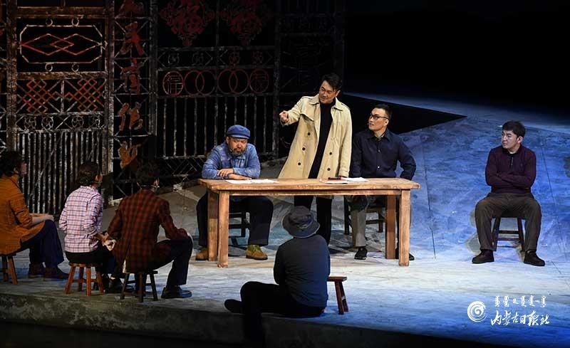 參演《紅手印》的都是來自草原的蒙古族演員,不僅要完成漢語的臺詞,還要熟練自然地講出大量內蒙古西部方言對白?!皩τ谠拕⊙輪T來說,臺詞功底太重要了。為了練好方言,我們好多演員早起練功的時候嘴里都念念有詞地說著西部方言?!毖輪T烏仁朝魯門說。他扮演的新扎木村主任令人印象深刻,一個一心想帶百姓致富卻屢遭失敗的老黨員形象。“之前表演歷史題材的話劇大多是從影像和資料了解人物,這部戲的題材貼近觀眾們的現實生活,必須接地氣才能得到認可。我通過寫人物小傳的方式,深挖村主任的人物個性和從失望到燃起希望的內心世界,讓觀眾能夠認可這個形象?!睘跞食旈T說。