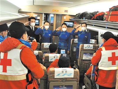 作為連通全國的運輸動脈,在完成常規(guī)運輸任務(wù)的基礎(chǔ)上,高鐵列車還承擔(dān)起了運送醫(yī)務(wù)人員、醫(yī)療用品和保障物資的特別任務(wù)。內(nèi)蒙古援鄂醫(yī)療隊員兩批次乘坐G2438次列車從北京中轉(zhuǎn)赴武漢;五批次乘坐“草原動車”由鄂爾多斯回到呼和浩特?!八陀⑿鄢稣?,接英雄回家”,七次運輸任務(wù),高鐵車隊以最高禮遇和精心的服務(wù),贏得醫(yī)療隊員們的紛紛好評?!爸x謝你們,出發(fā)時為我們送行,歸來時為我們唱起凱旋之歌?!贬t(yī)療隊隊員李紅娟緊緊握住列車長張雨的手說。