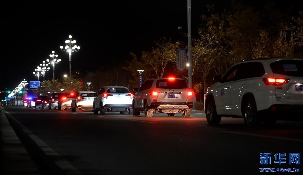 10月28日,即將離開(kāi)額濟(jì)納旗的滯留自駕游客車(chē)隊(duì)。新華社記者 王雪冰 攝