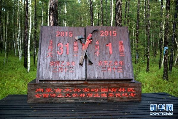 內(nèi)蒙古大興安嶺林區(qū)停伐紀(jì)念碑。新華網(wǎng) 石毅 攝