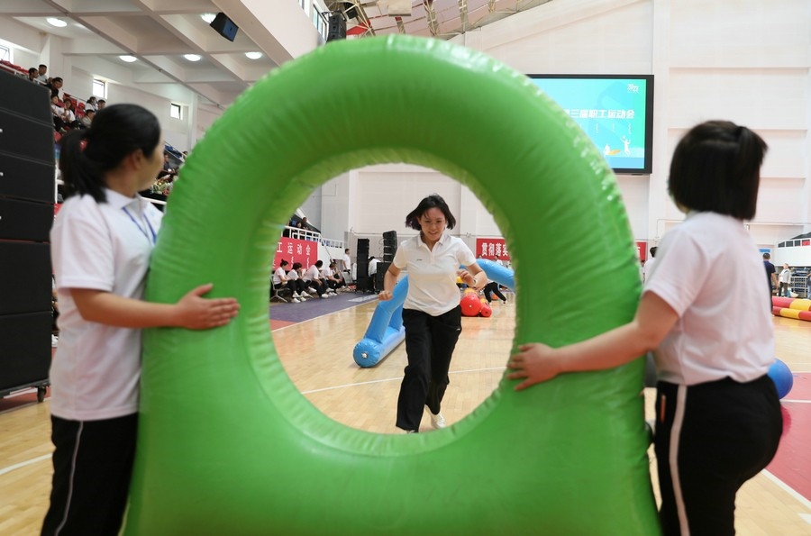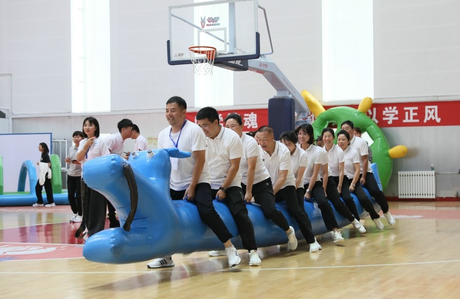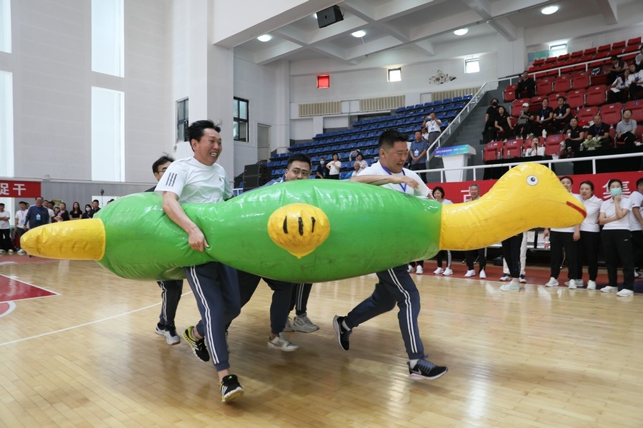 在隨后進行的趣味運動會中,依次進行了“陸地冰壺”“龜兔賽跑”“漢諾塔”等比賽項目。而在此前一天,羽毛球等項目也已開賽。賽場上,運動員們團結(jié)一心,奮力拼搏。觀眾席上,“最強氣氛組”組成強大的啦啦隊,為參賽選手們吶喊助威、加油鼓勁,共同凝聚團隊的精神,一起分享比賽的快樂。