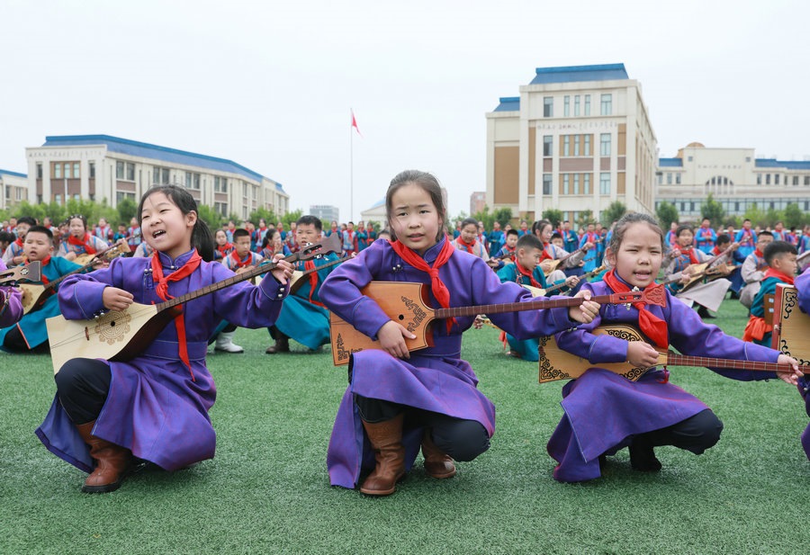 “今天參加4個‘千人文化’特色課程感到非常高興和開心。這4個課程讓我們的文化素養(yǎng)得到質(zhì)的提升,愉悅了身心。”五年級125班的哈斯寶勒爾剛剛參加完特色課程展示。哈斯寶勒爾表示,這4個課程,比如玩象棋的話,可以提升自己的思維邏輯,讓自己的思路更加清晰,能夠提升學(xué)習(xí)成績;練習(xí)筷子舞,可以讓我們的心情變得更加愉悅,通過練習(xí)跳舞,讓我們身體的柔韌性更強(qiáng);唱江格爾,能鍛煉我們的唱歌能力,還能讓我們把非物質(zhì)文化遺產(chǎn)傳承下去;踢足球可以鍛煉我們的體能。