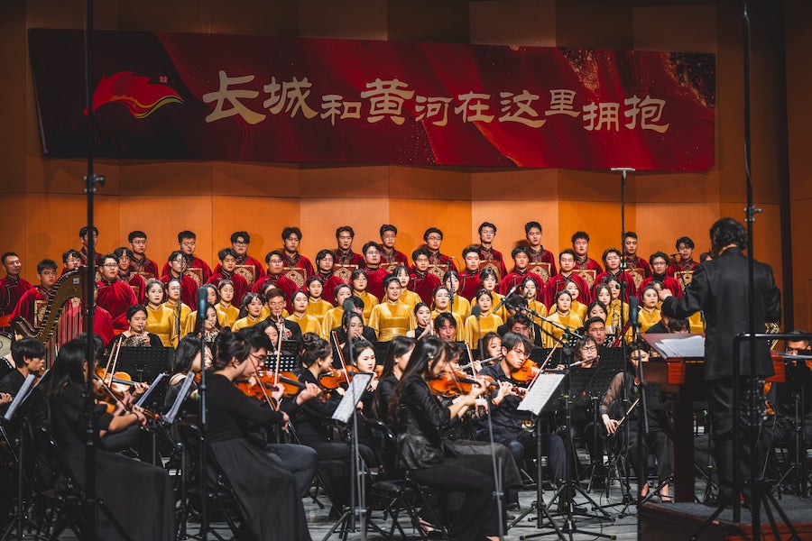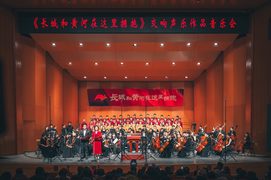 12月20日晚,“長城和黃河在這里擁抱”交響聲樂作品音樂會在內(nèi)蒙古藝術學院新華校區(qū)演藝廳華美上演。