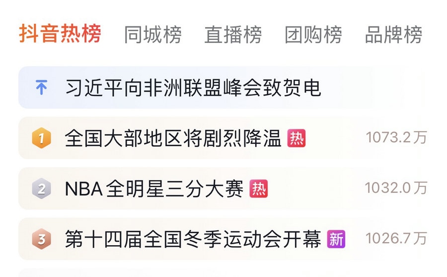 當晚,無與倫比、震撼人心的開幕式登上抖音熱榜第一名,截至18日中午,依然是熱榜前三名。