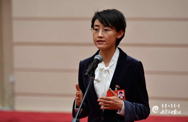 自治區(qū)政協(xié)委員曹紅回答記者提問(wèn)。內(nèi)蒙古日?qǐng)?bào)記者 馬建荃攝