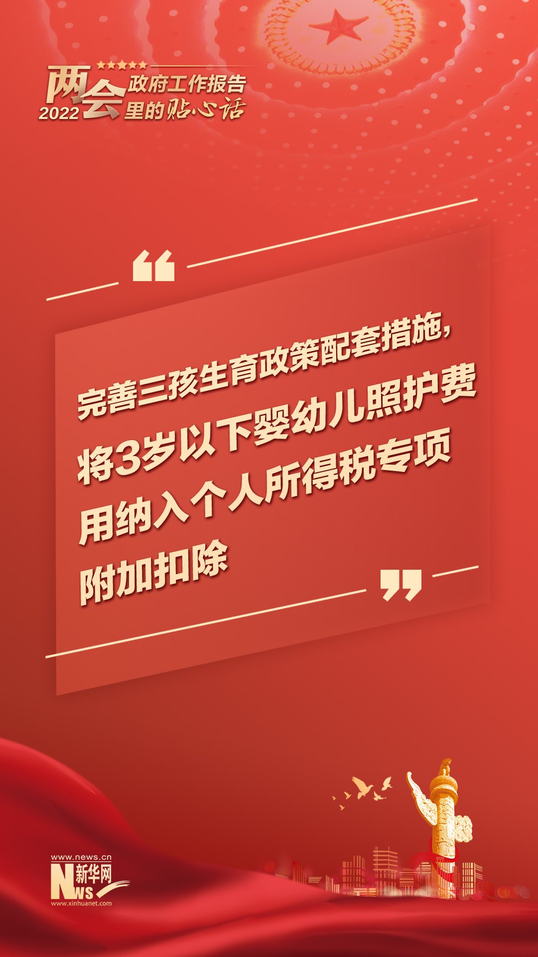 堅持政府要過緊日子,更好節(jié)用裕民;讓三百六十行行行人才輩出;將3歲以下嬰幼兒照護費用納入個人所得稅專項附加扣除;裝滿“米袋子”、充實“菜籃子”,把14億多中國人的飯碗牢牢端在自己手中……今年政府工作報告里的這些話,既貼心又有力!